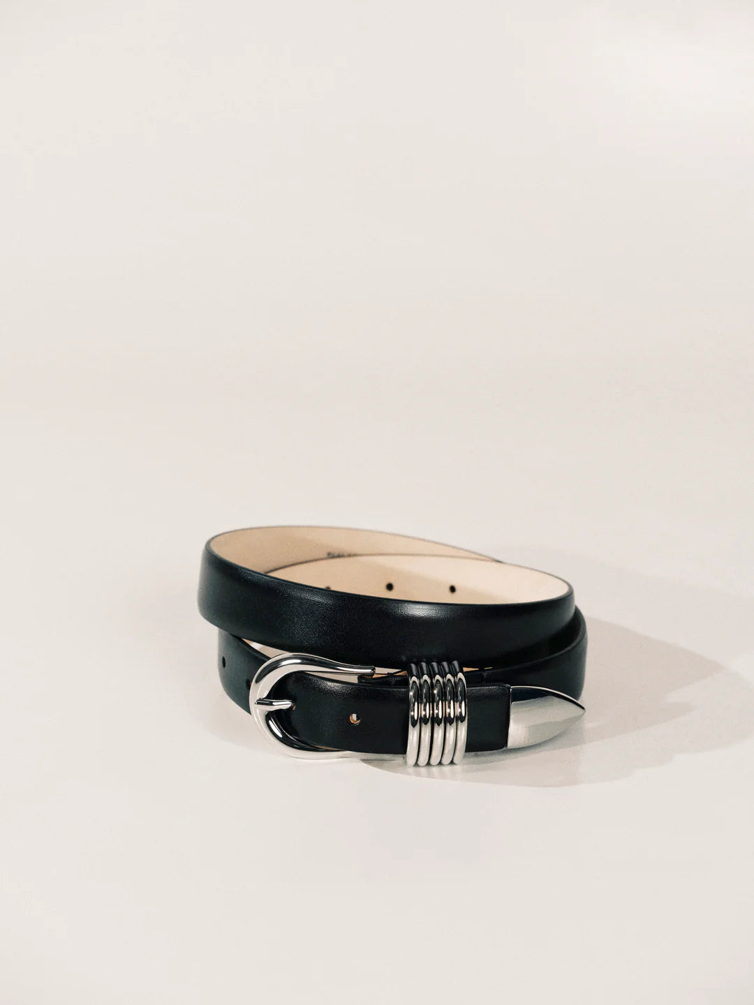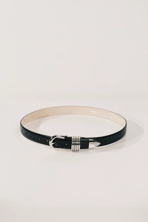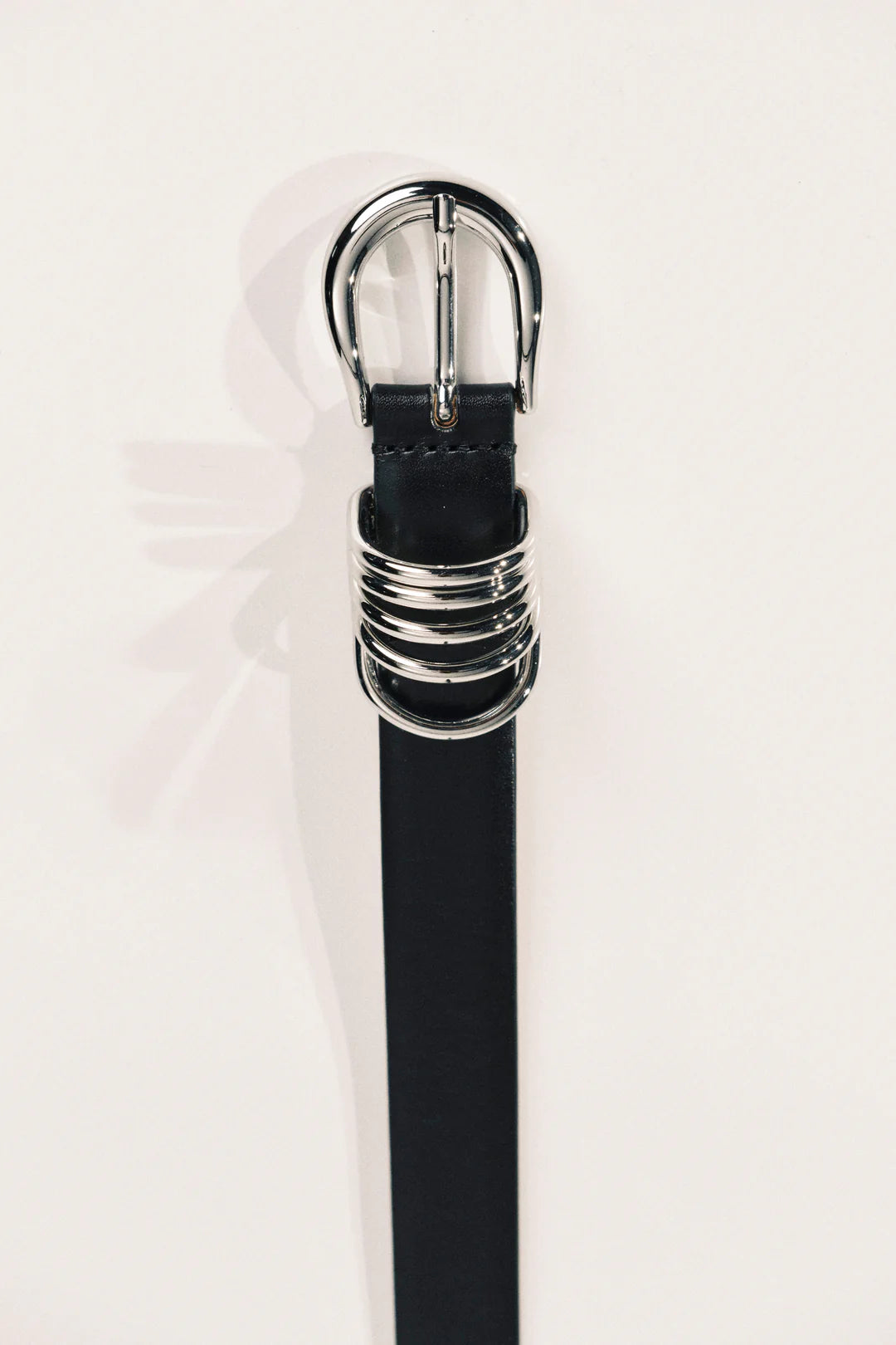Déhanche's signature style featuring 5 rings adornments with 10 holes and an extended strap length to accommodate a broader range of sizes. Meticulously crafted from Italian leather and silver hardware